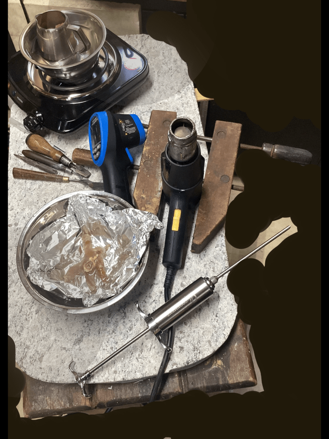Pas de Deaux, lower figure attitude for melted wax insertion, second try.